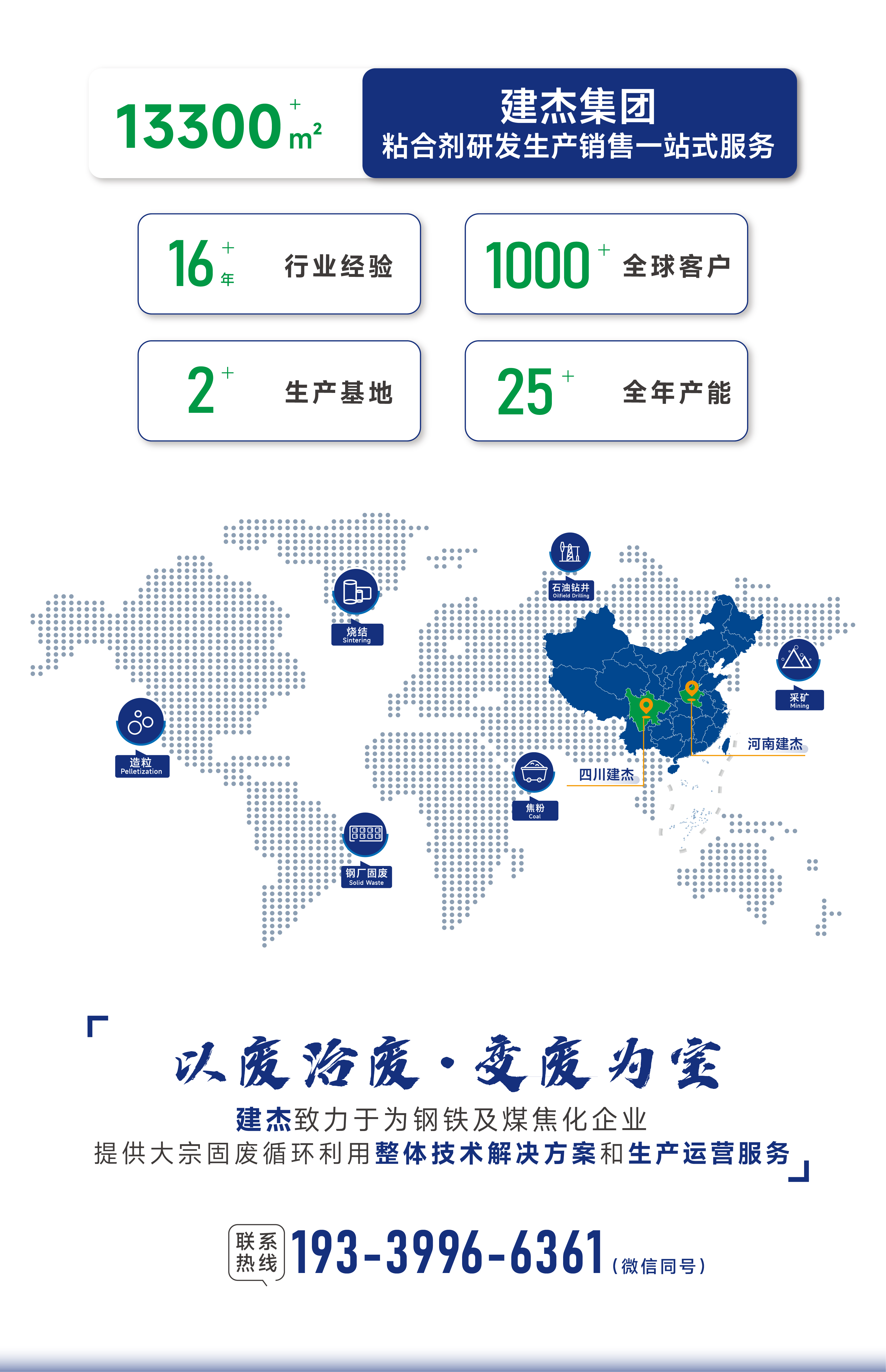 建杰实业长期深耕钢厂固废、冶金矿粉、煤焦化、建材等行业粘合剂的经营领域,是全国较大的